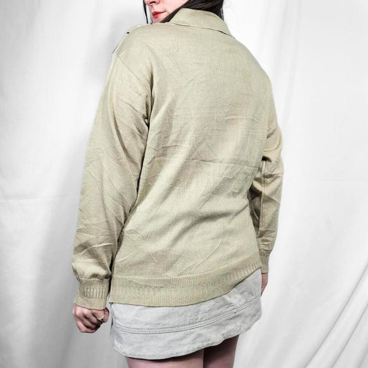 1990s Tan & Black Stripe Quarter Zip Knit Jumper