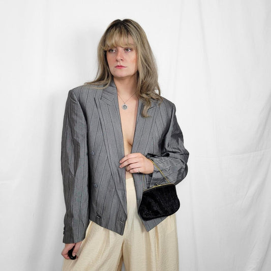 90s Grey Pinstripe Oversized Blazer – Classic Power Suit Vibes