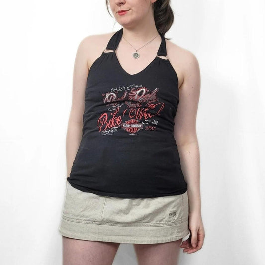 Harley Davidson Y2K Black Graphic Print Halter Neck Top
