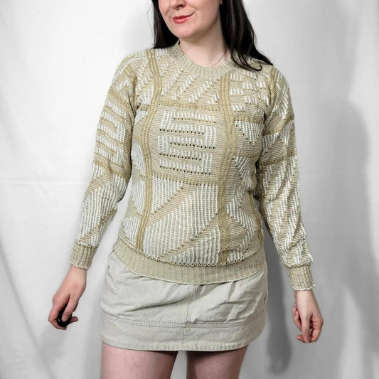 1990s Tan & Black Stripe Quarter Zip Knit Jumper